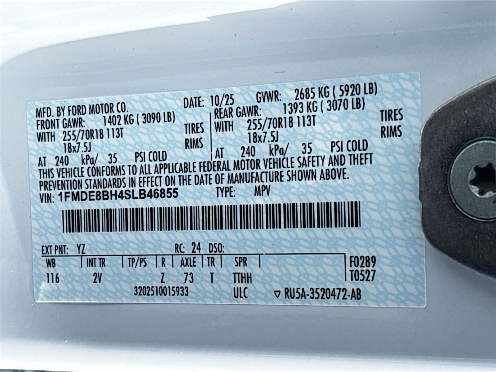 - Tires: P255/70R18 A/T -inc: full size spare tire w/TPMS