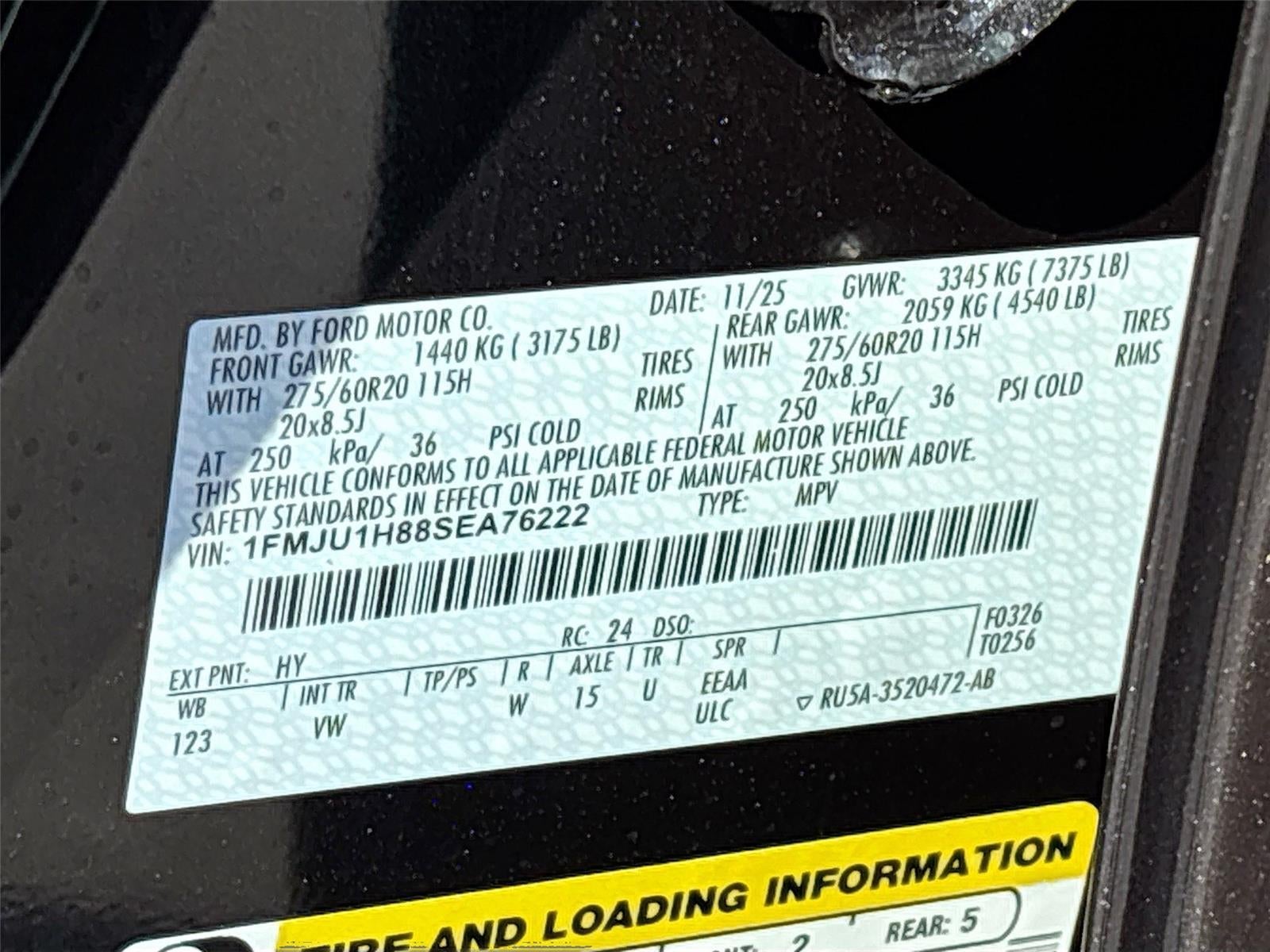 - Includes vehicle with standard equipment, Ford Co-Pilot360 Active 2.0, intersection assist, driver state detection, BlueCruise equipped (90-day trial), flex powered console, front side laminated glass, power tilt/telescoping steering column with memory, power panoramic Vista Roof with power shade, Ford split gate with power upper liftgate and power lower tailgate, third row flexible seating, 360-degree zone lighting, illuminated rear spoiler, power-folding second row captains chairs with armrests and tip-and-slide, first and second row ActiveX seating material, memory driver seat, 4-door Intelligent Access (lock/unlock), 110V/400W AC power outlet - one (1) console and one (1) cargo area, USB ports - one (1) C + C in cargo area, 20 inch x 8.5 inch Carbonized Gray bright machined aluminum wheels, P275/60R20 all season tires, heated steering wheel, dual power-folding sideview mirrors with autofold, heated glass, ground illuminator, driver/passenger sideview mirror memory, rain sensitive windshield wipers, heated front row seats, SecuriCode keyless entry keypad, third row vinyl seats with remote power-folding head restraints, universal garage door opener (UGDO), and wireless charging pad in front media hub.