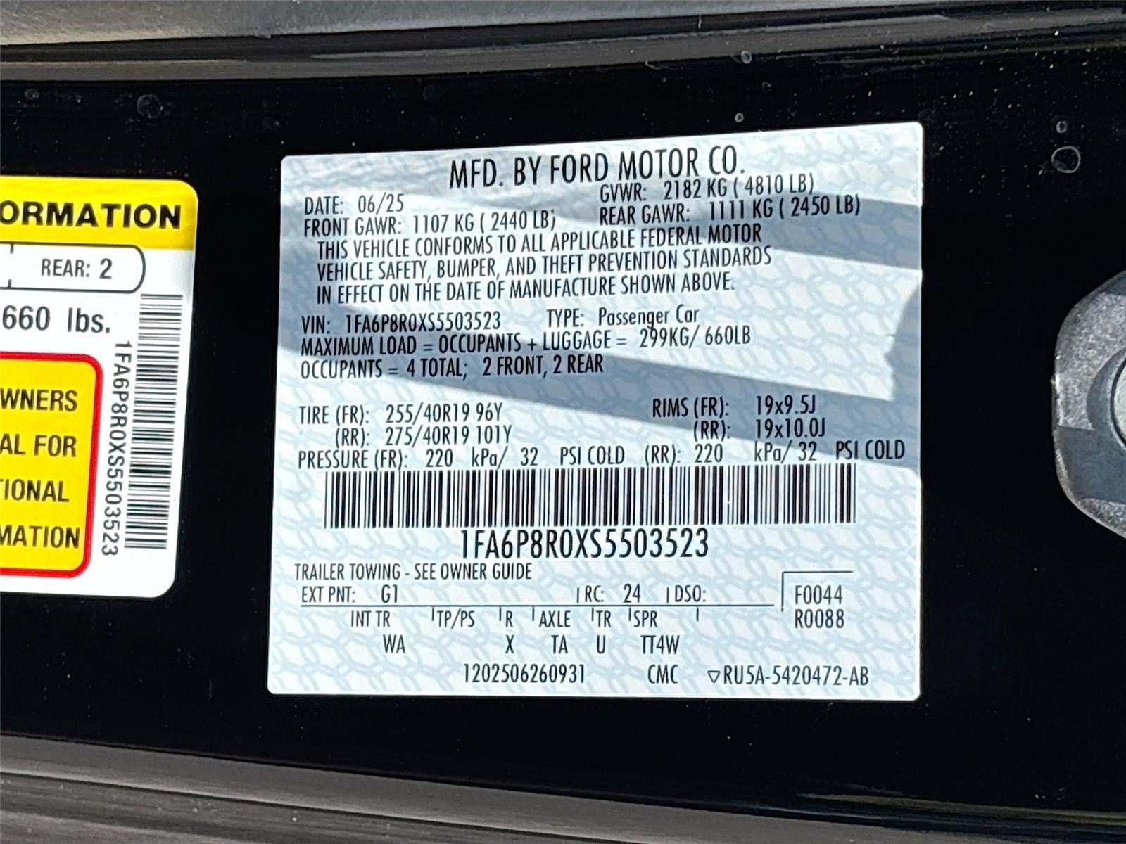 - Vehicle Name: Ford Mustang