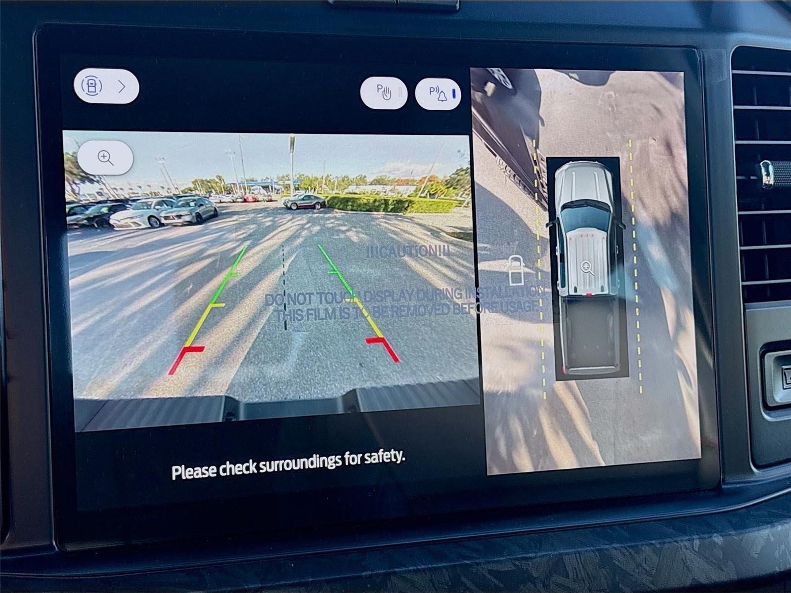 - Includes Ford Co-Pilot360 Assist 2.0, 360 degree camera, adaptive cruise control with stop-and-go and predictive speed assist, lane centering, automatic high beam, blind spot information system (BLIS) with cross-traffic alert and trailer coverage, front and rear parking sensors, lane-keeping alert, lane-keeping aid, driver alert, intersection assist, pre-collision assist with automatic emergency braking, forward collision warning with pedestrian detection, post-collision braking, reverse brake assist, head-up display, 4-way adjustable headrests, B&O 1080-watt sound system with 13 speakers and subwoofer, HD radio, power running boards, tailgate step, Pro Trailer Backup Assist, Pro Trailer Hitch Assist, trailer reverse guidance, and power-sliding glass with defrost and privacy glass.