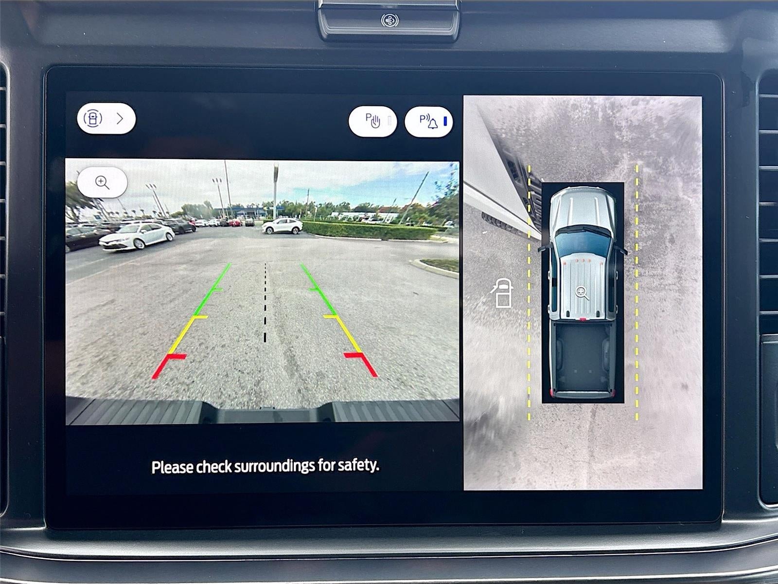 - Includes Ford Co-Pilot360 Assist 2.0, 360 degree camera, adaptive cruise control with stop-and-go and predictive speed assist, lane centering, automatic high beam, blind spot information system (BLIS) with cross-traffic alert and trailer coverage, front and rear parking sensors, lane-keeping alert, lane-keeping aid, driver alert, intersection assist, pre-collision assist with automatic emergency braking, forward collision warning with pedestrian detection, post-collision braking, reverse brake assist, head-up display, 4-way adjustable headrests, B&O 1080-watt sound system with 13 speakers and subwoofer, HD radio, power running boards, tailgate step, Pro Trailer Backup Assist, Pro Trailer Hitch Assist, trailer reverse guidance, and power-sliding glass with defrost and privacy glass.