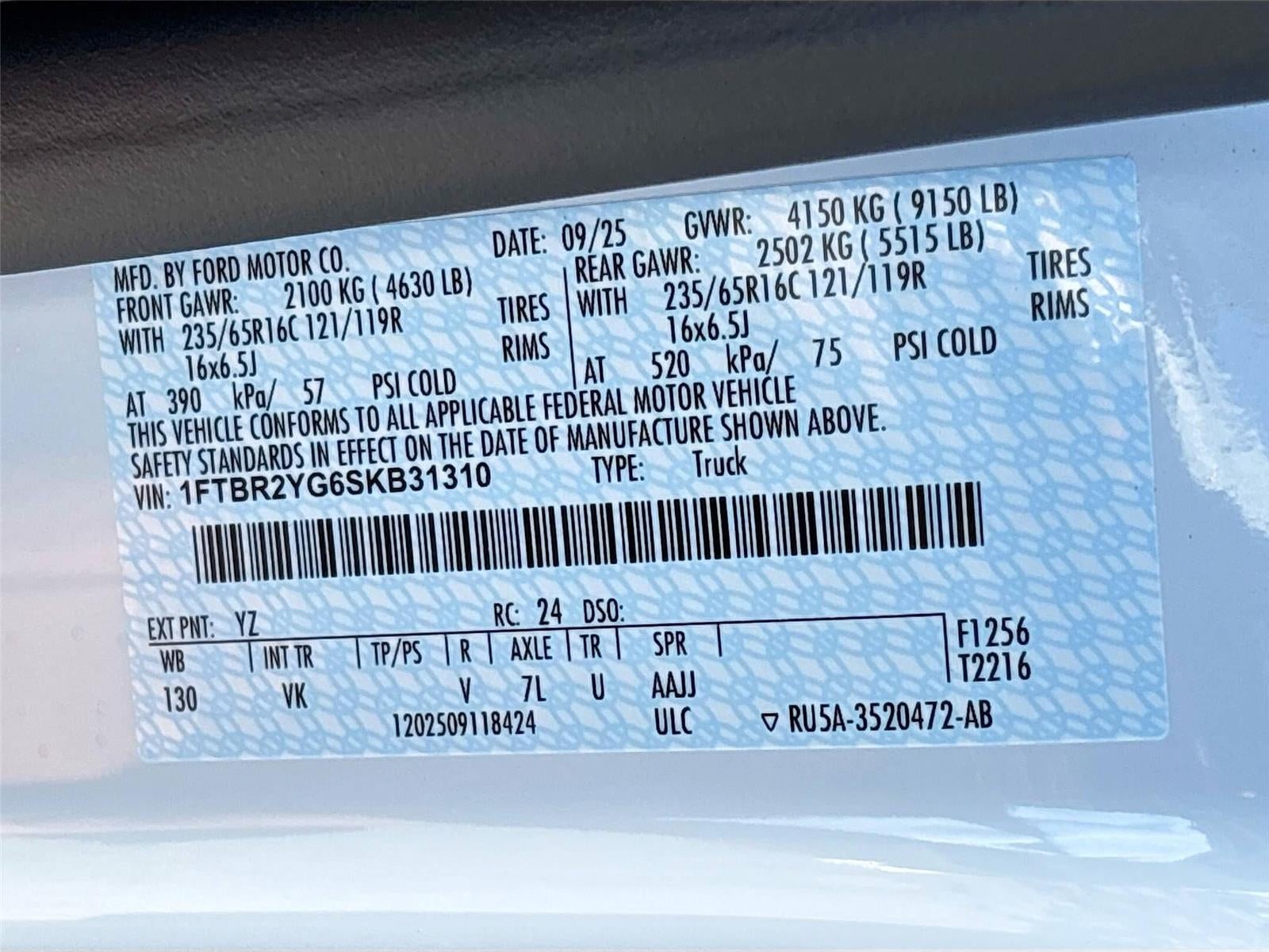 2025 Ford Transit Cargo Van T-250 130" Low Rf 9070 GVWR AWD