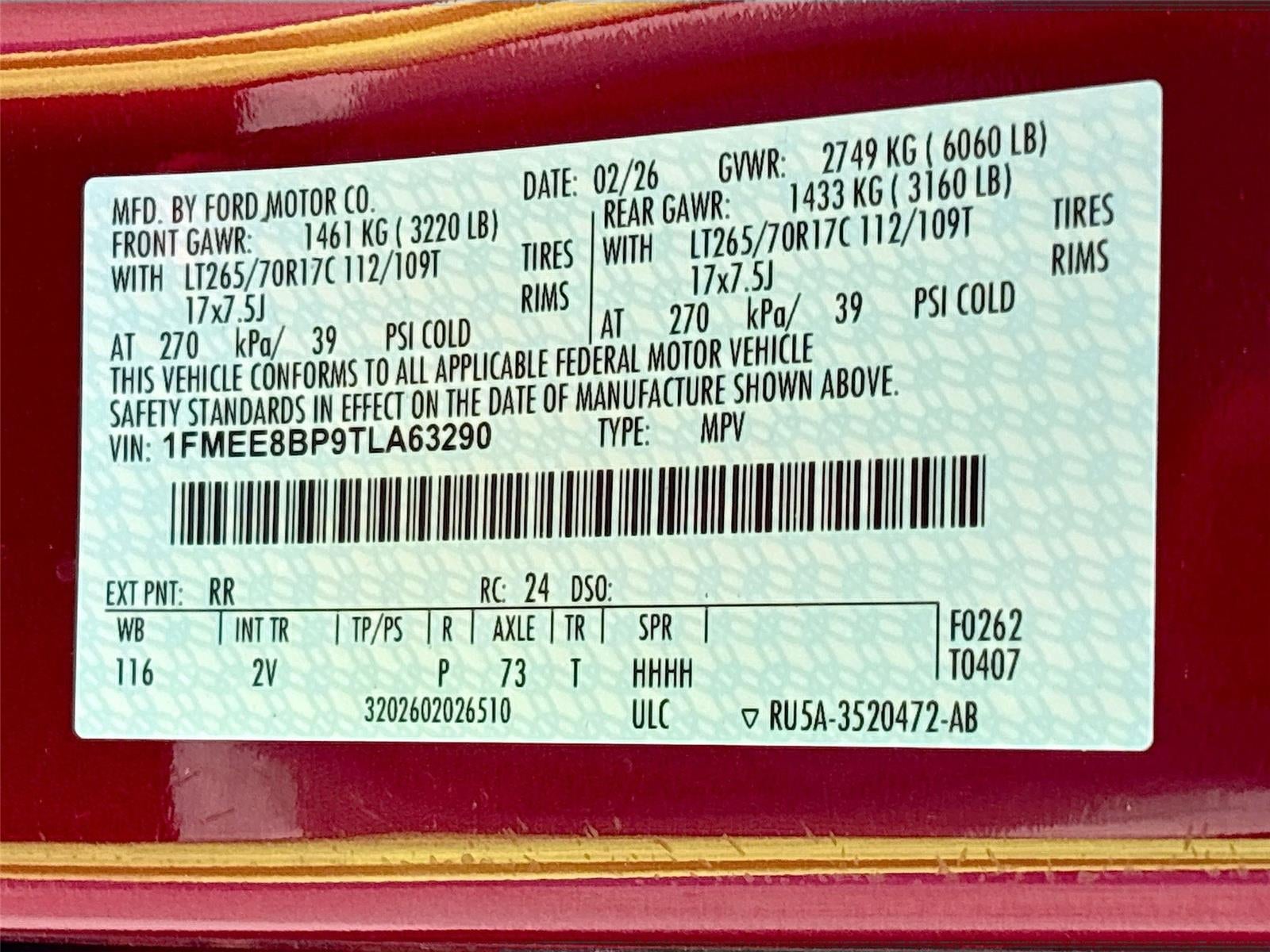 - Gross Axle Wt Rating - Front (lbs): 3270