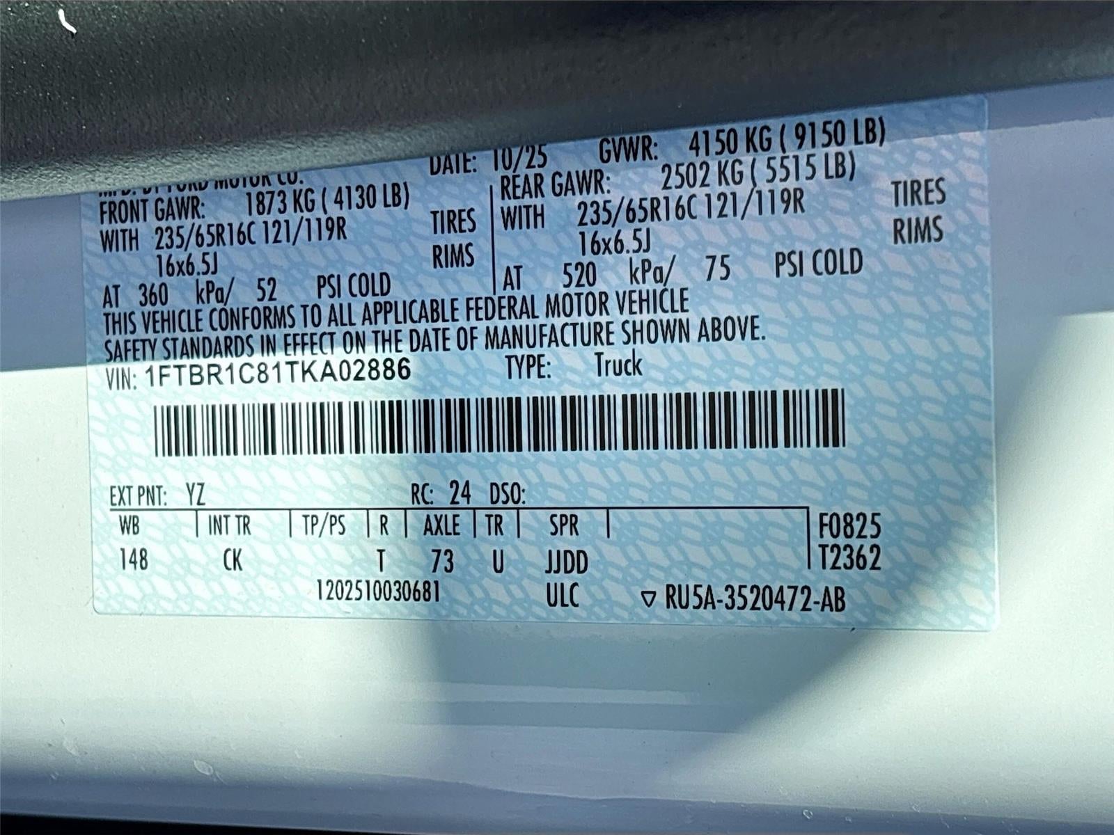 2026 Ford Transit Cargo Van T-250 148" Med Rf 9150 GVWR RWD