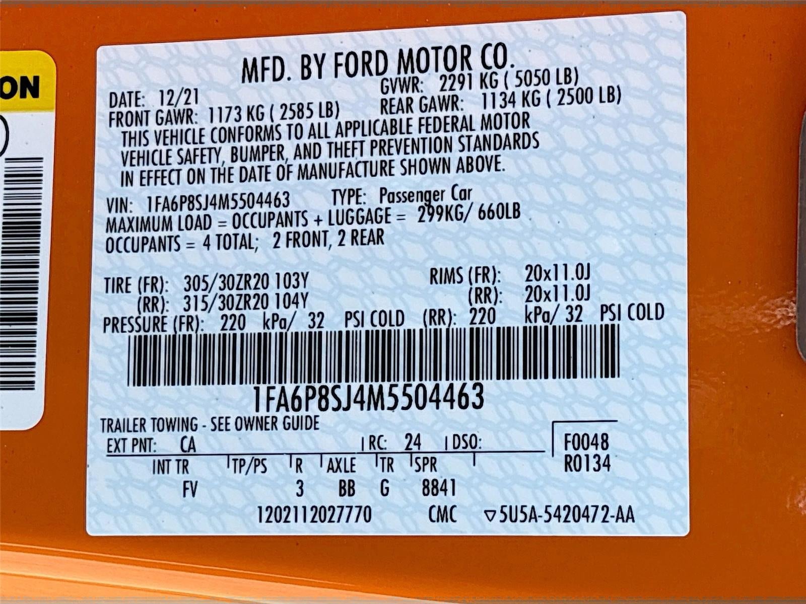 - Vehicle Name: Ford Mustang