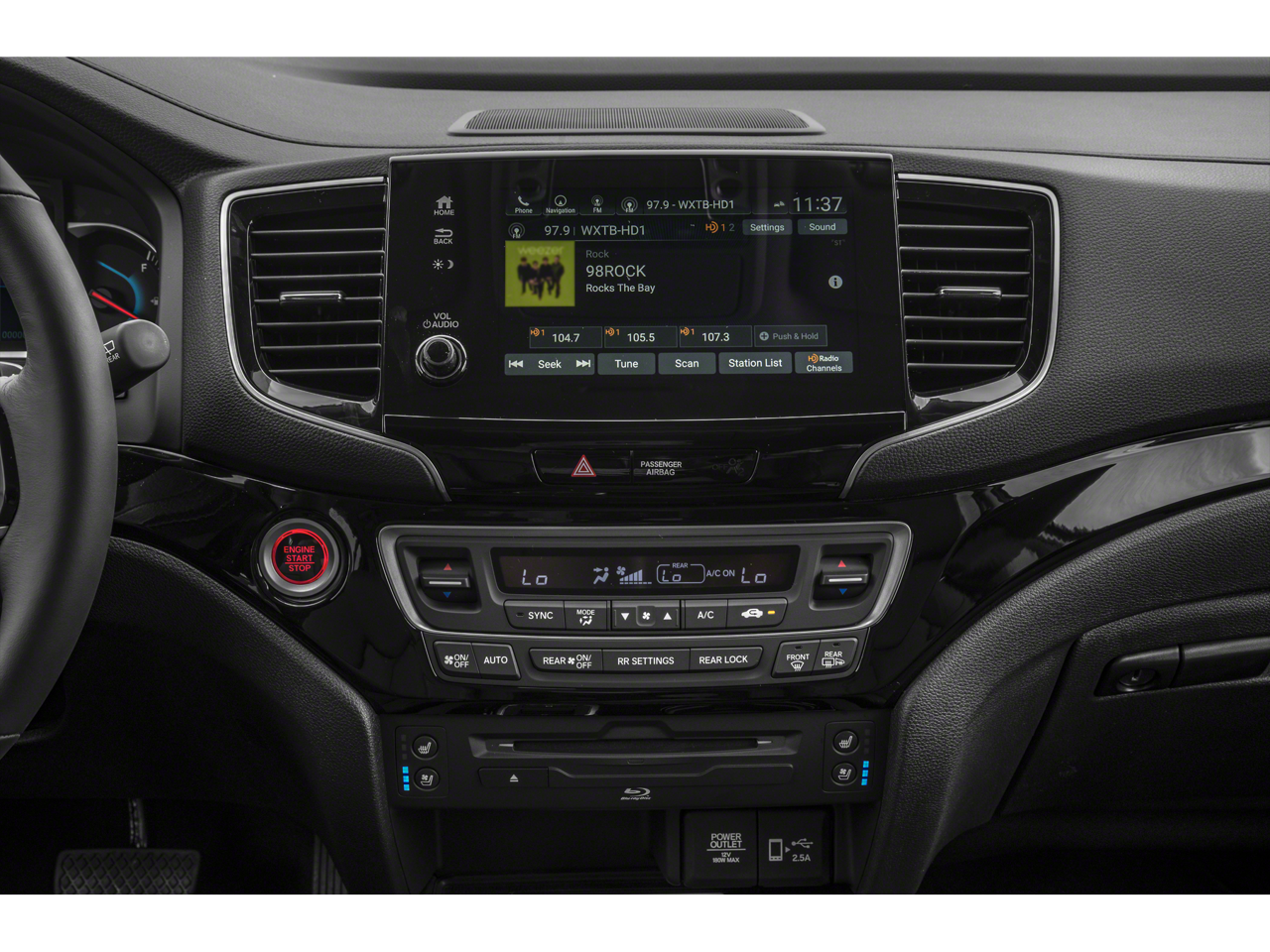 - Radio: 590-Watt Premium Audio System -inc: 10 speakers, subwoofer, 8" display audio w/high-resolution electrostatic touch-screen and customizable feature settings, 2.5-amp USB smartphone/audio interface front console (1 port), Bluetooth® HandsFreeLink, Bluetooth® streaming audio, MP3/auxiliary input jack, Radio Data System (RDS), Speed-Sensitive Volume Compensation (SVC), 2.5-amp USB charging port in center console (1 port) and 2nd row (2 ports), HondaLink, CabinControl remote compatibility, Apple CarPlay integration, Android Auto integration, SMS text message function (Compatible w/select phones w/Bluetooth®, Your wireless carrier's rate plans apply, State or local laws may limit use of texting feature, Only use texting feature when conditions allow you to do so safely.), SiriusXM radio (SiriusXM services require a subscription after any trial period, If you decide to continue your SiriusXM service at the end of your trial subscription, the plan you choose will automatically renew and bill at then-current rates until you call SiriusXM at 1-866-635-2349 to cancel, See our customer agreement for complete terms at www.siriusxm.com, Fees and programming subject to change, Available in the 48 contiguous United States and D.C, SiriusXM and all related marks and logos are trademarks of SiriusXM Radio Inc, HD Radio, CabinTalk in-car PA system through speakers and headphones, HondaLink subscription services (HondaLink subscription services come w/complimentary trials of security for 1 year and a remote/concierge trial for 3 months, Enrollment is required to access the remote/concierge trial and to access certain features of security, At the end of each trial period, purchase of a subscription is required to continue the respective services.), Wi-Fi hotspot capability (Requires AT&T data plan.) and multi-zone audio