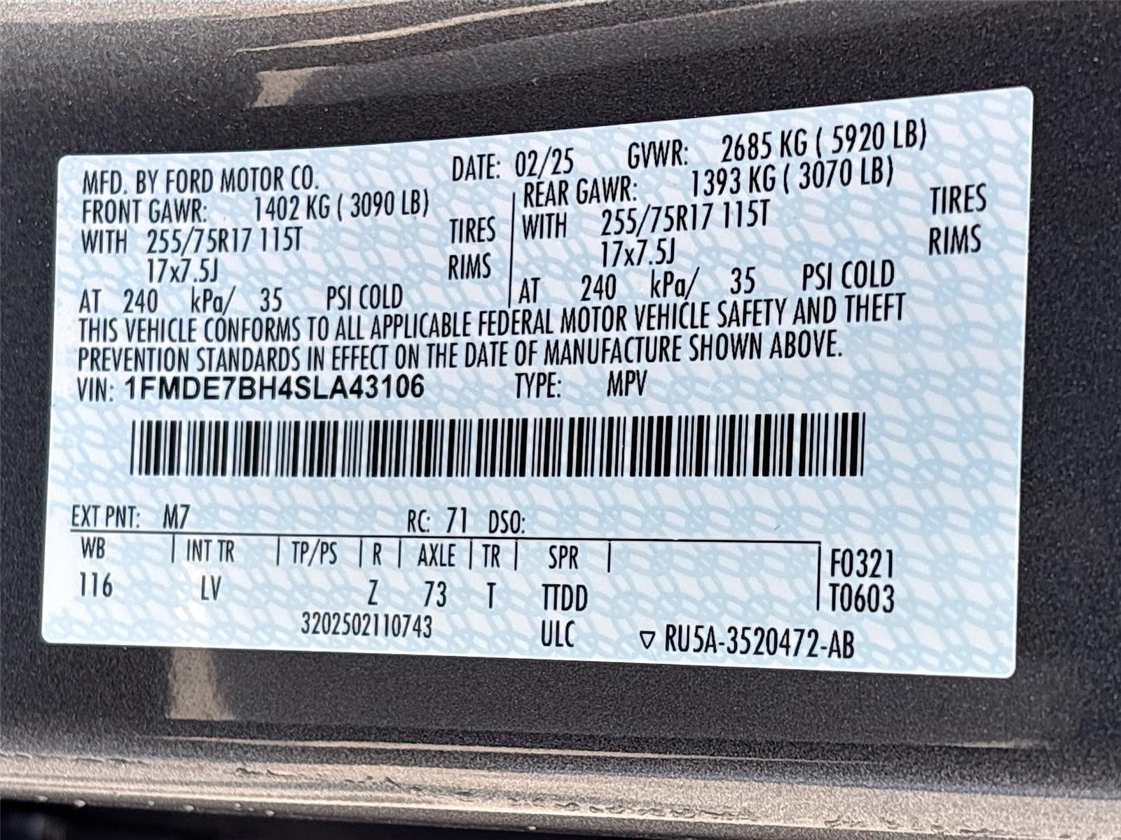 - Tires: P255/75R17 A/T -inc: full size spare tire w/TPMS